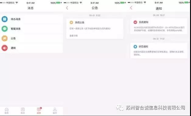 此次产品升级增加了公告与通知功能,在这里你可以看到公司财务部门发布的财务政策、规章制度等;还可以看到系统升级更新、使用说明等相关信息;还可以收到已提交单据的审批状态通知。